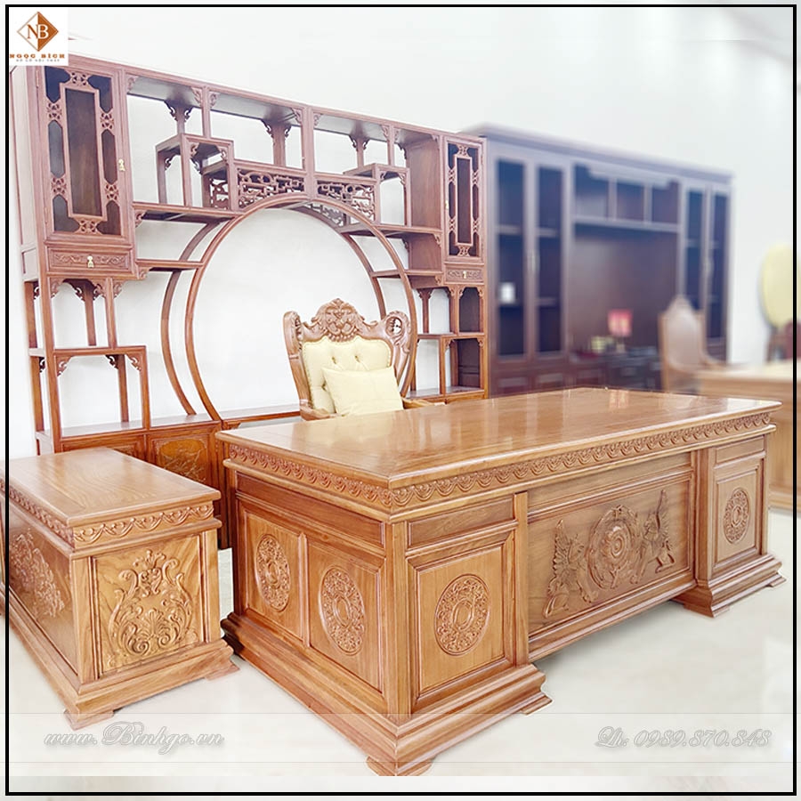 - Một bộ Bàn Giám Đốc gỗ tự nhiên – Mẫu Điểu Sư: được thiết kế và sản xuất riêng cho bạn, không phải hàng sản xuất hàng loạt cho tất cả ( SL sản xuất hạn chế).